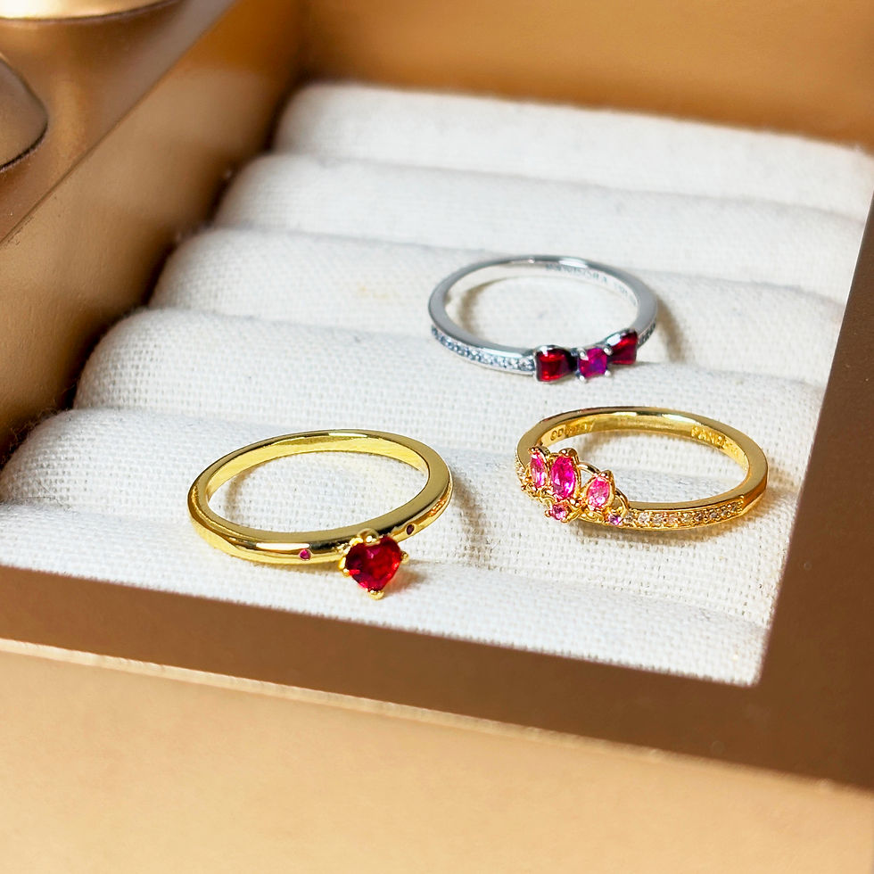 You and Me Sparkling Heart Ring – 14k Gold-Plated Ring with Red CZ Crystals